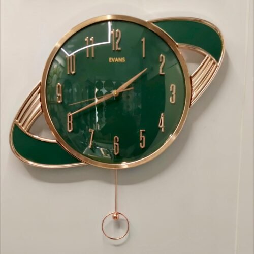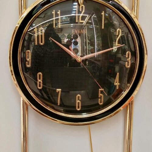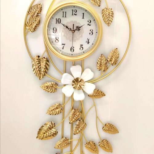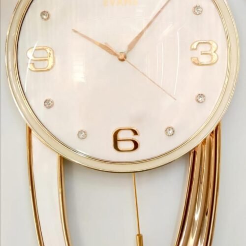 Pendulum: At the bottom, a sleek, thin gold pendulum hangs down, giving the clock a classic yet modern feel.