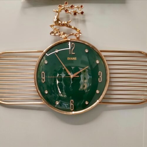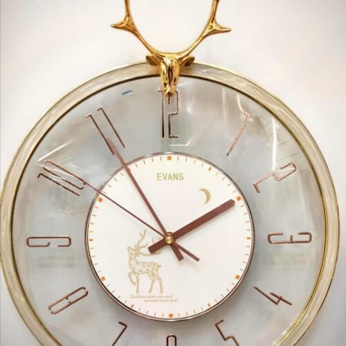 Design & Aesthetics: The clock features a unique, leaf-shaped outer frame in a polished gold finish. At the top, there is an elegant deer antler motif, which adds a touch of nature-inspired sophistication.