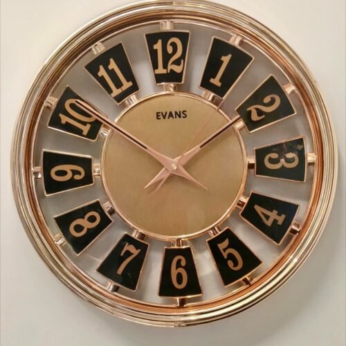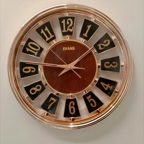 Evans Luxury Rose Gold & Wood Finish Floating Numeral Wall ClockElevate your home decor with this stunning wall clock from Evans. “