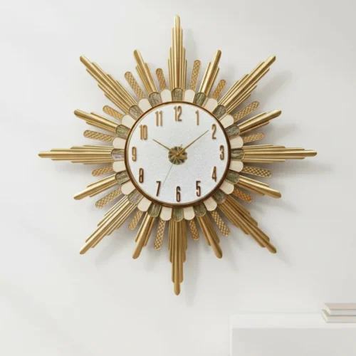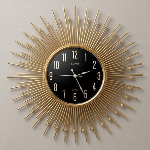 Evans Luxury Gold Sunburst Wall Clock with Diamond Accents