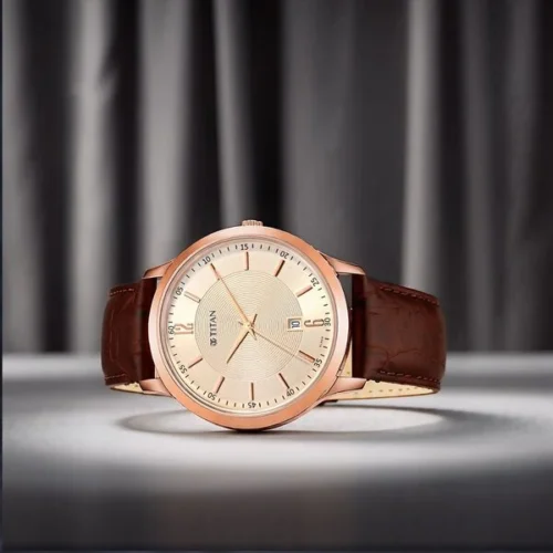 Titan Rose Gold Dial Analog with Date Leather Strap watch for Men