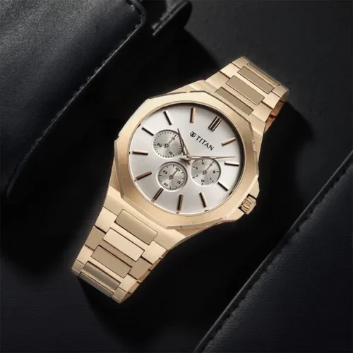 Titan Neo Multifunction Gold Men’s Watch (With Octagonal Bezel)