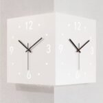 Be the first to review “Double-Sided Corner Metal Wall Clock. It is a modern and creative home decor piece designed specifically to utilize the 90-degree corners of a room.”