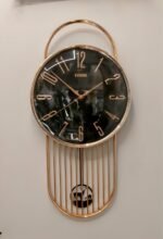 Unique Pendulum Design: The highlight of this clock is the artistic pendulum at the bottom, showcasing an intricate Deer/Stag silhouette, enclosed within a stylish vertical metal grille.