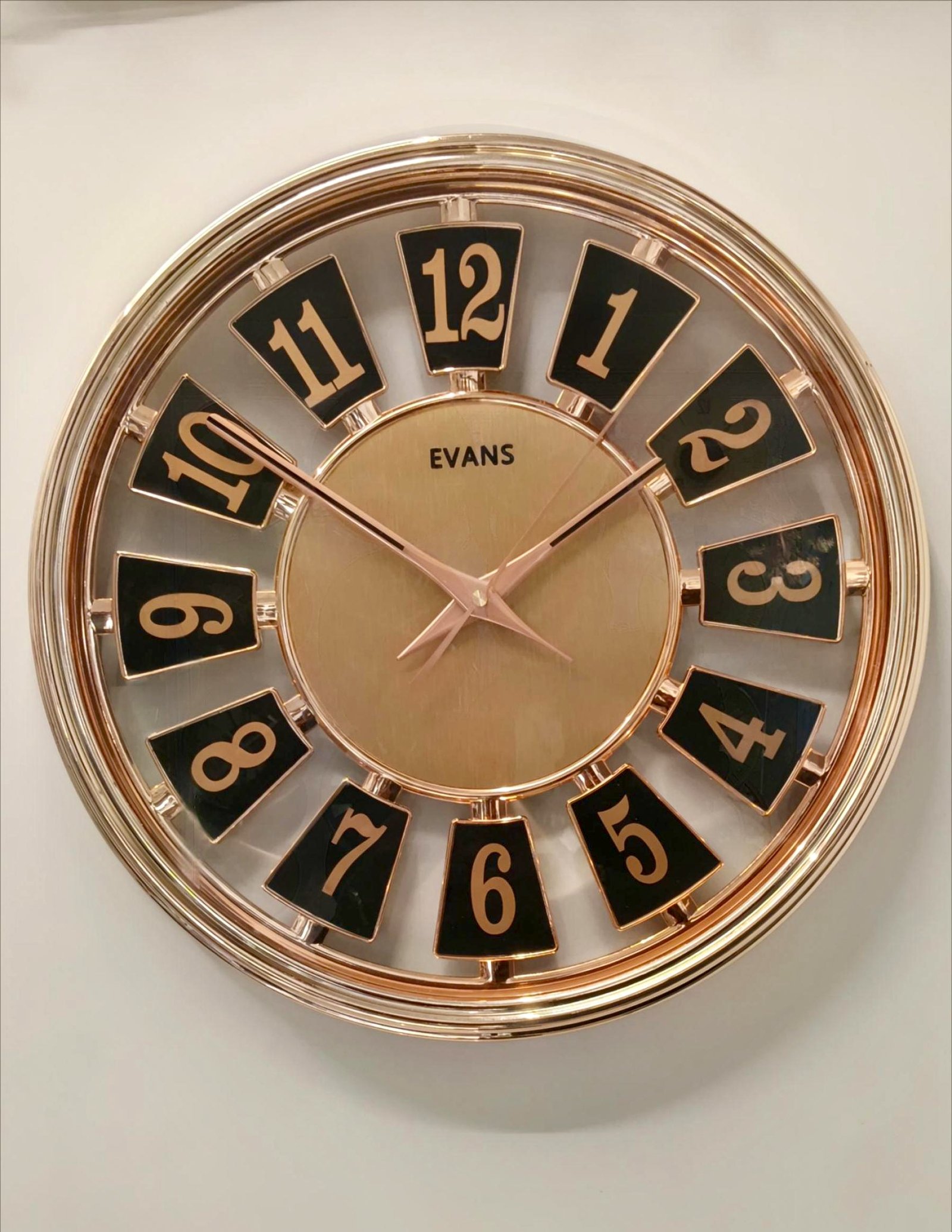 Evans Luxury Rose Gold & Wood Finish Floating Numeral Wall ClockElevate your home decor with this stunning wall clock from Evans. “