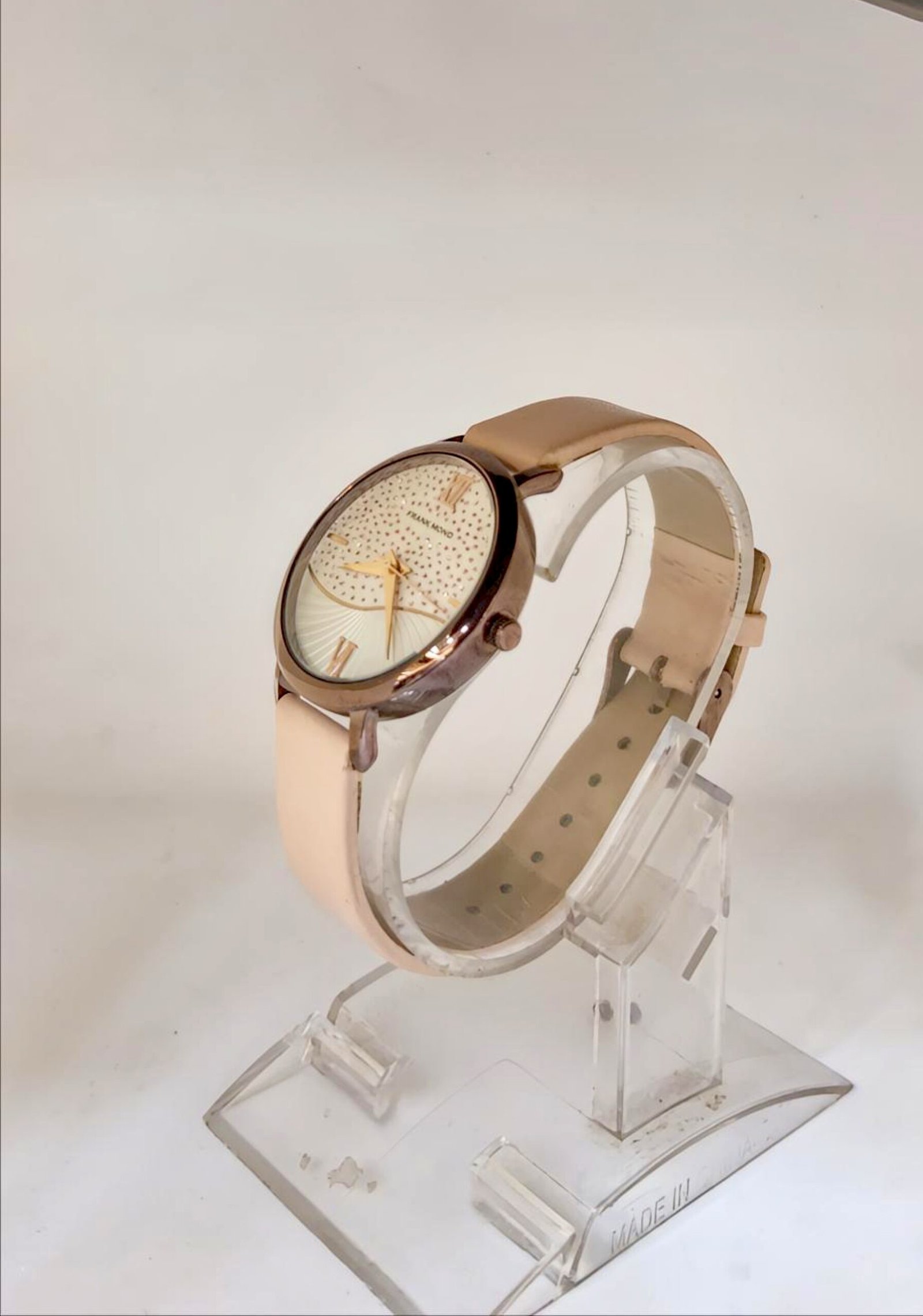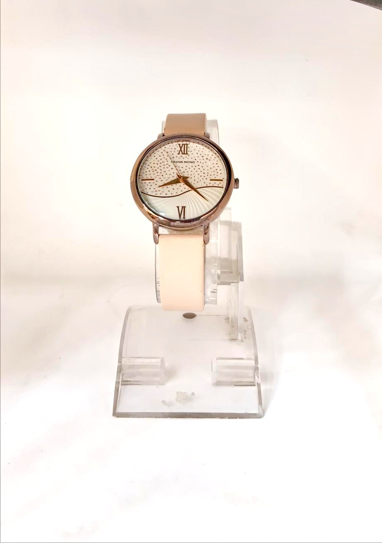 Add a touch of sophistication to your wrist with this exquisite Frank Mond timepiece. Designed for the modern woman who appreciates subtle elegance, this watch features a stunning Rose Gold casing that perfectly complements the soft Blush Pink leather strap.