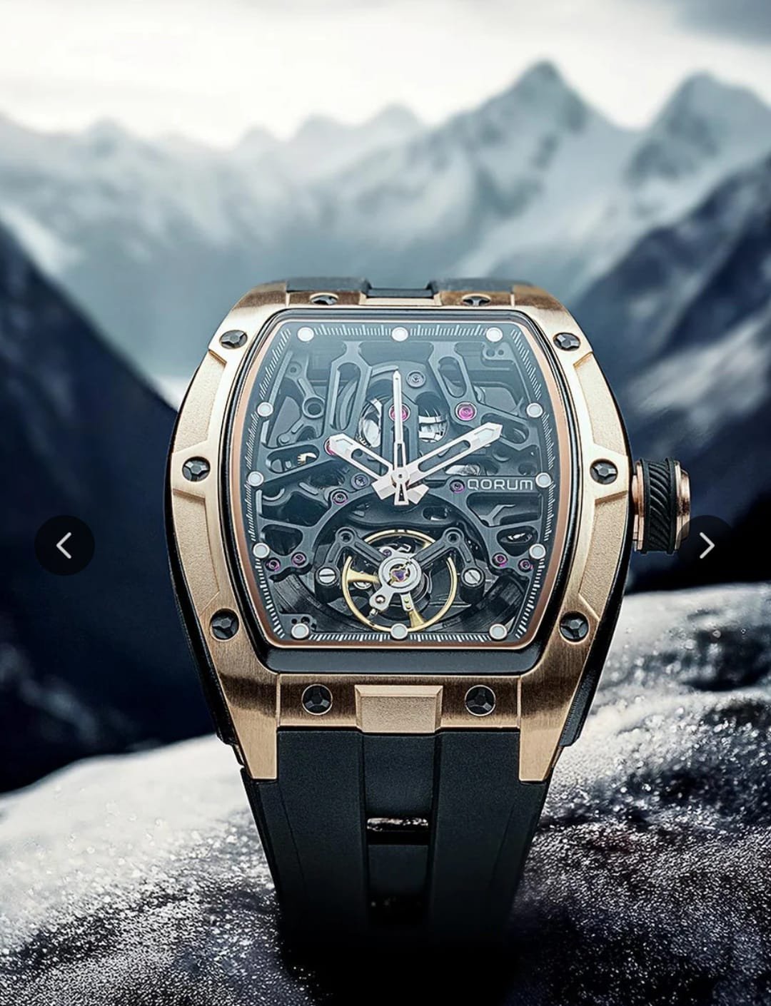 Qorum Rose Gold Skeleton Tourbillon Luxury Watch