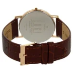 Experience the epitome of sophistication with this Titan Edge timepiece, renowned for being one of the slimmest watches in the world. The watch features a rich, chocolate-brown dial accented with elegant gold-toned Roman numerals and slender hands, creating a classic vintage look. Encased in a sleek, gold-finished stainless steel frame, it is paired with a premium, textured brown leather strap that offers both comfort and style.