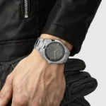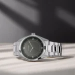precise accessory to match your workplace demands needn’t come at a hefty price. This timepiece with black dial and dual stainless-steel strap is simple yet eye-catching. The analogue function and features such as conventional quartz movement, a metal case for added protection and 5 ATM water resistance are penny plain elements that merit its classy style