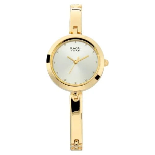This is a stunning timepiece from the Titan Raga collection, designed to celebrate elegance and femininity.