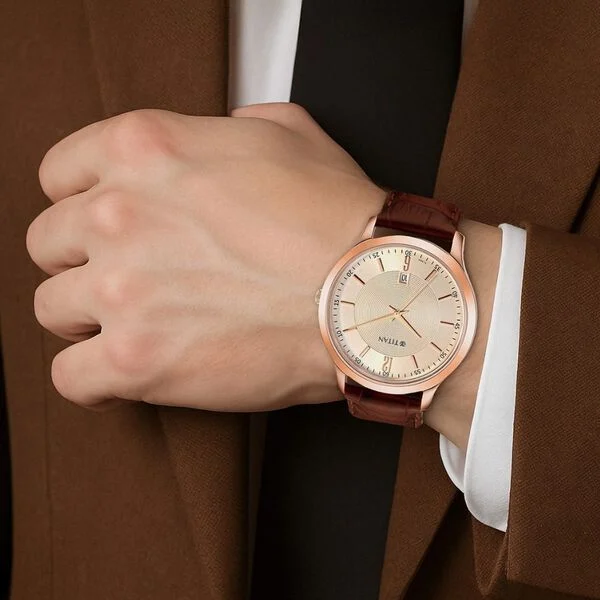Titan Rose Gold Dial Analog with Date Leather Strap watch for Men