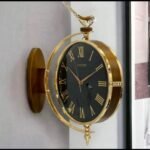 Vintage Clock Handcrafted Double Side Roman Number Brass Finish Metal Railway Station Analog Clock, 12 Inches